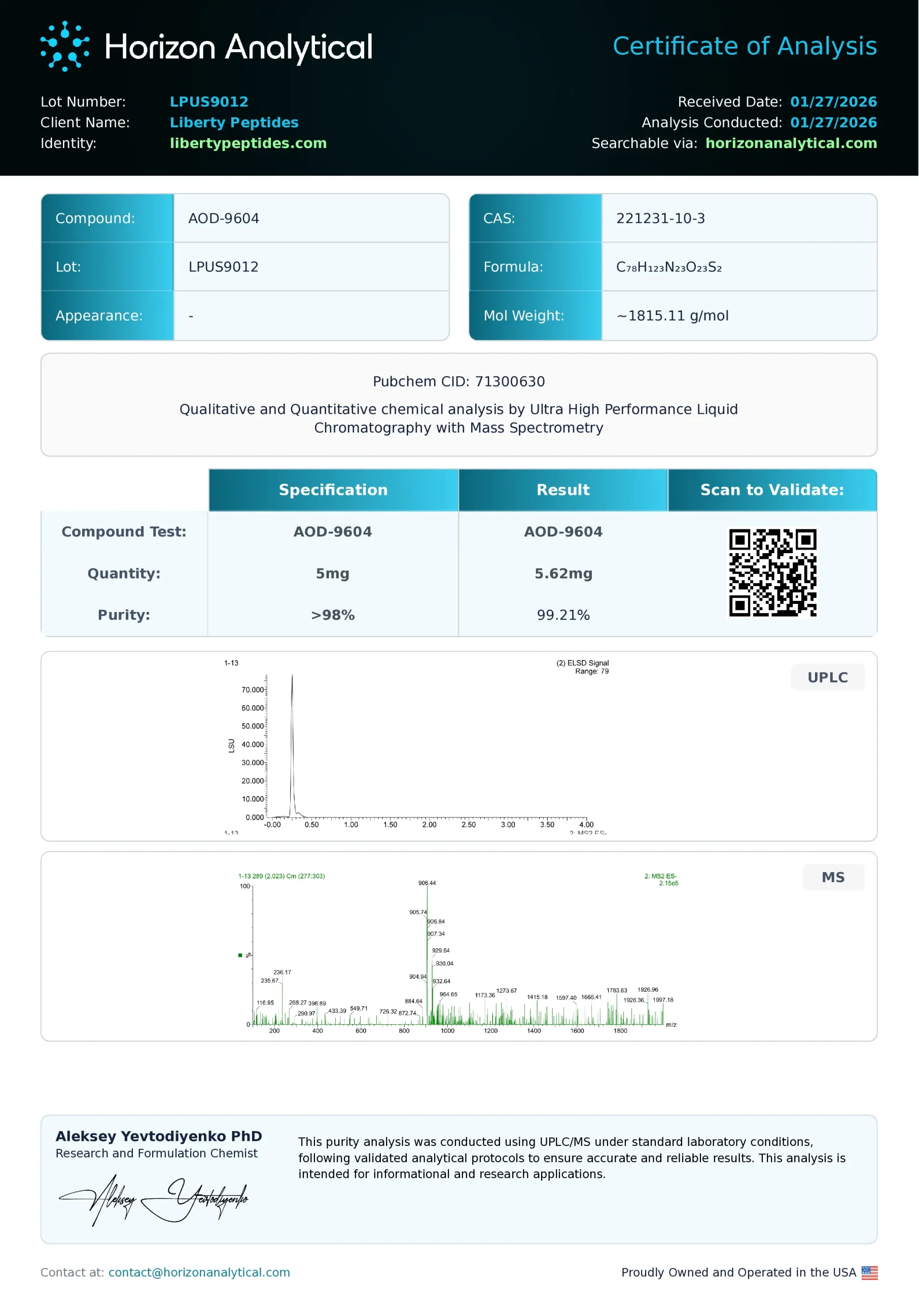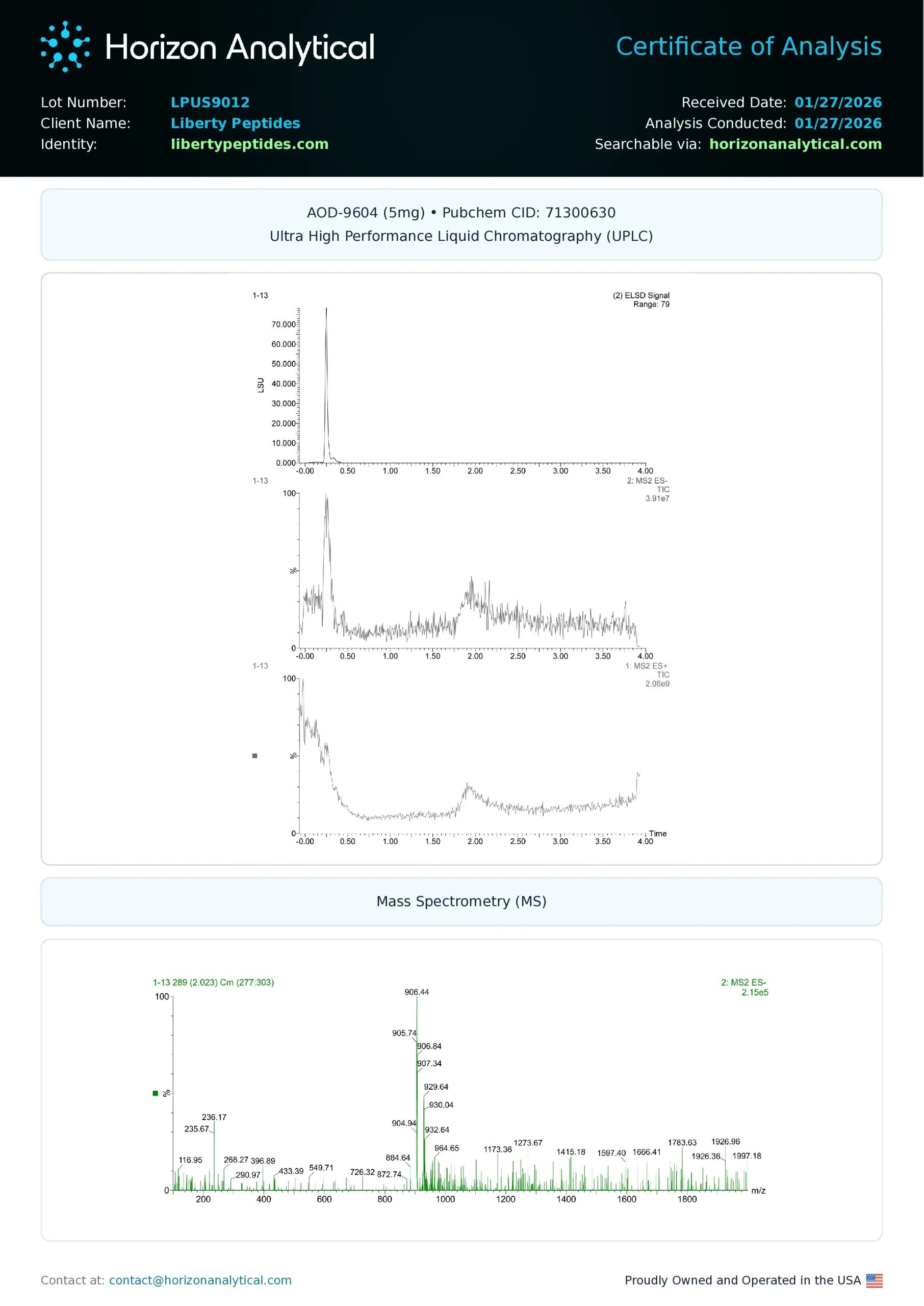 Every batch of raw materials is tested using UPLC and LC-MS to confirm chemical integrity