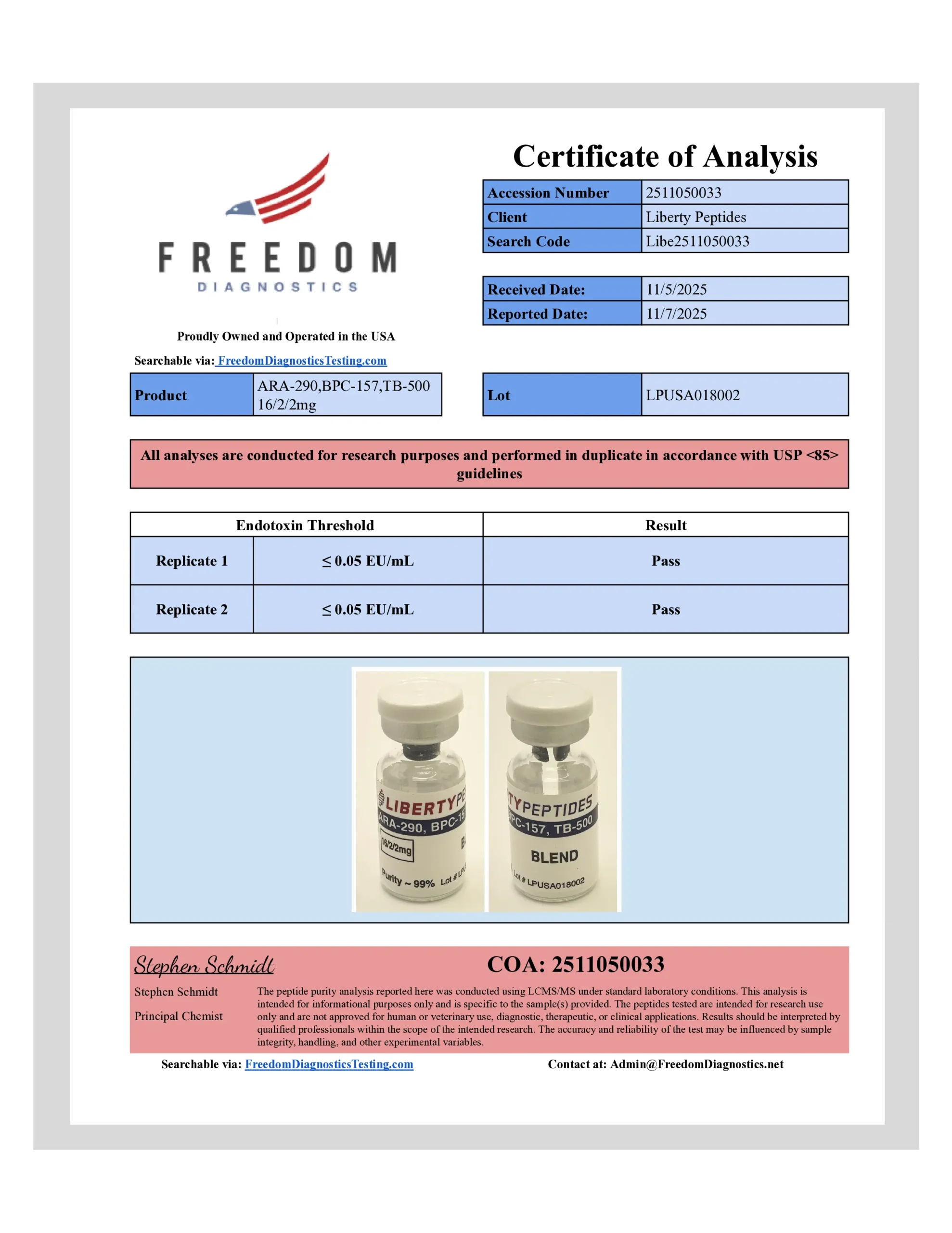 Third-party tested for ~99% purity