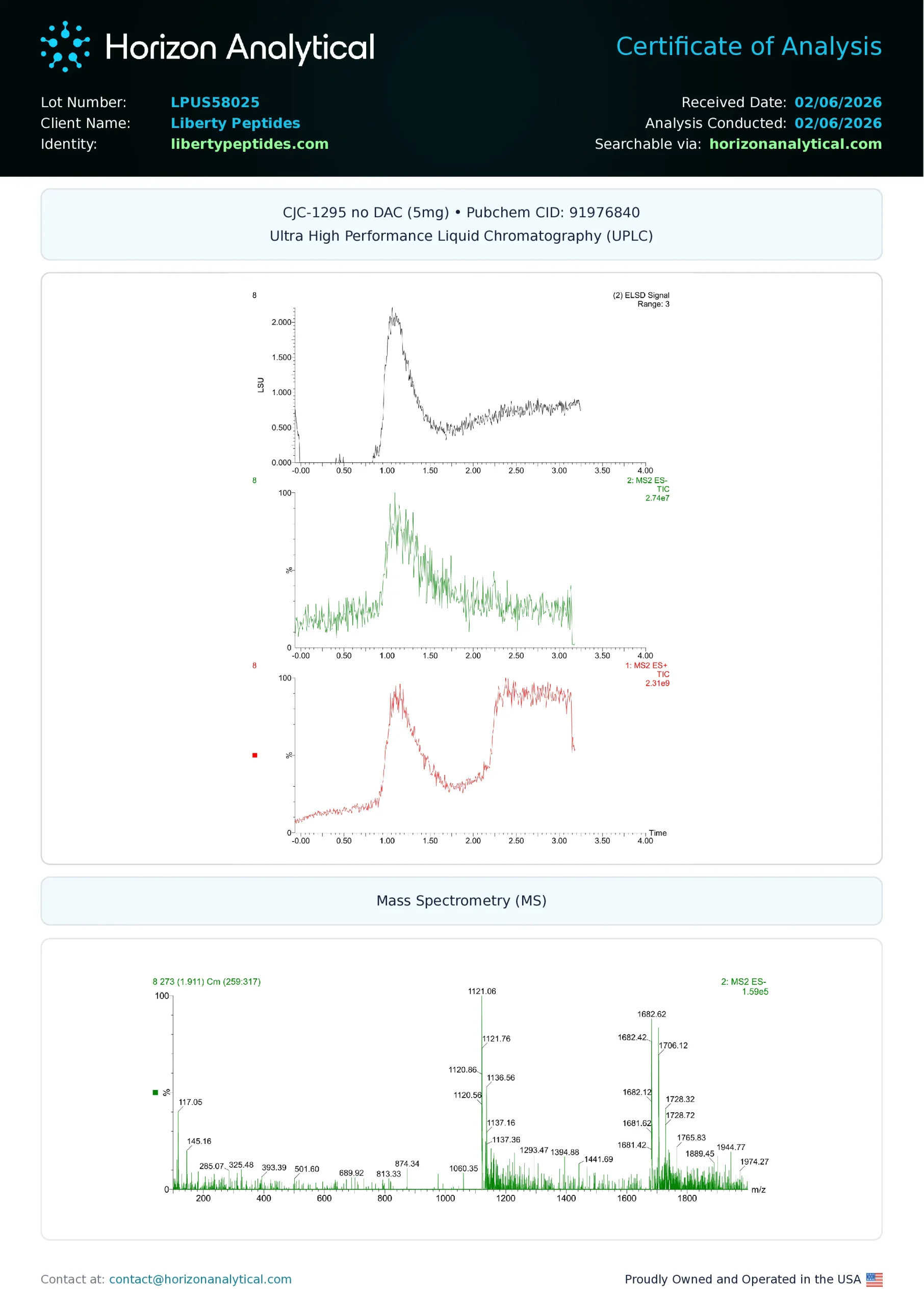 Every batch of raw materials is tested using UPLC and LC-MS to confirm chemical integrity