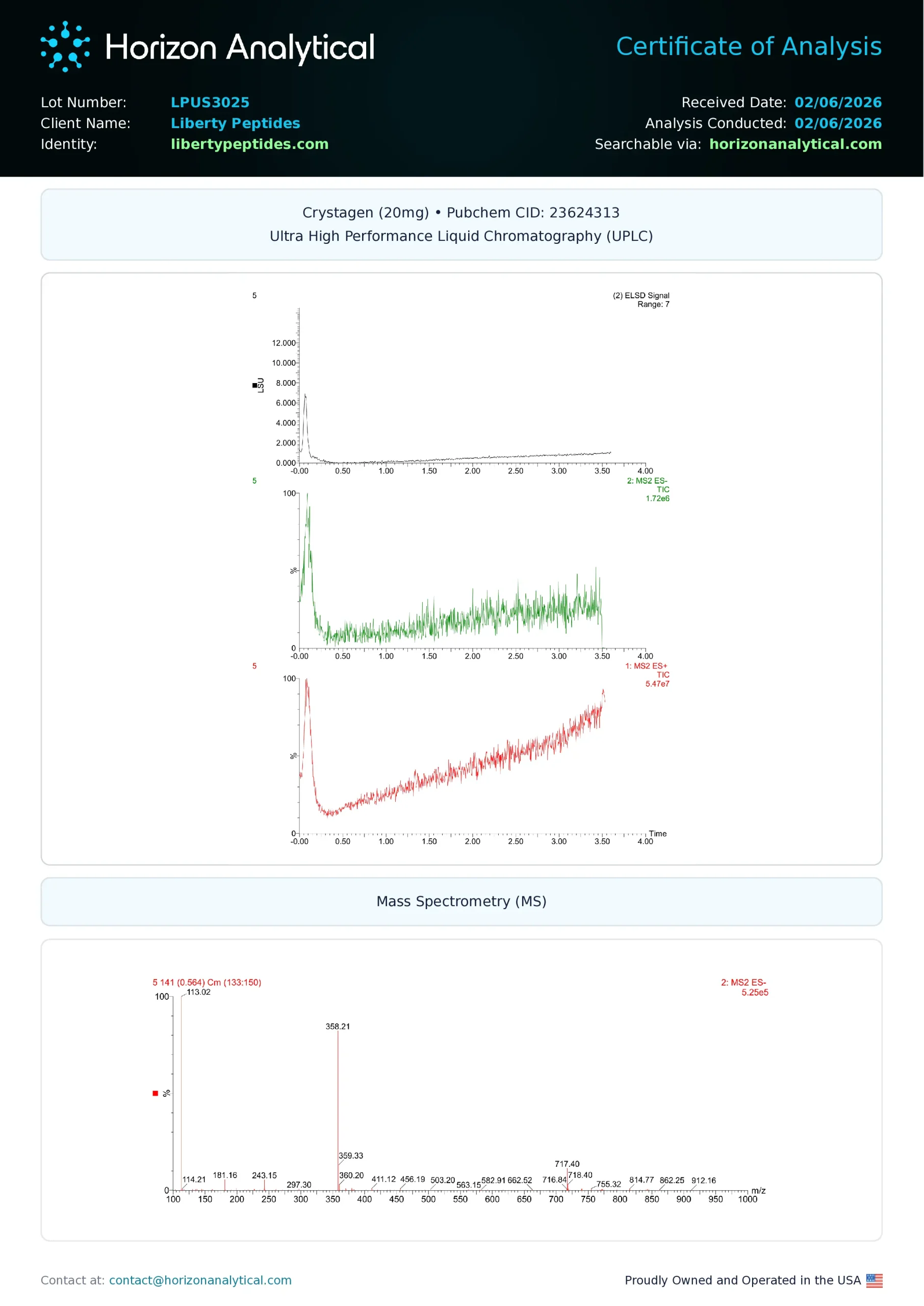 representative samples within each production batch and reflect analytical results for the tested product. As with any batch-produced material, individual vials may exhibit minor quantitative variation. Detailed batch and analytical information can be found on the corresponding CoA.
