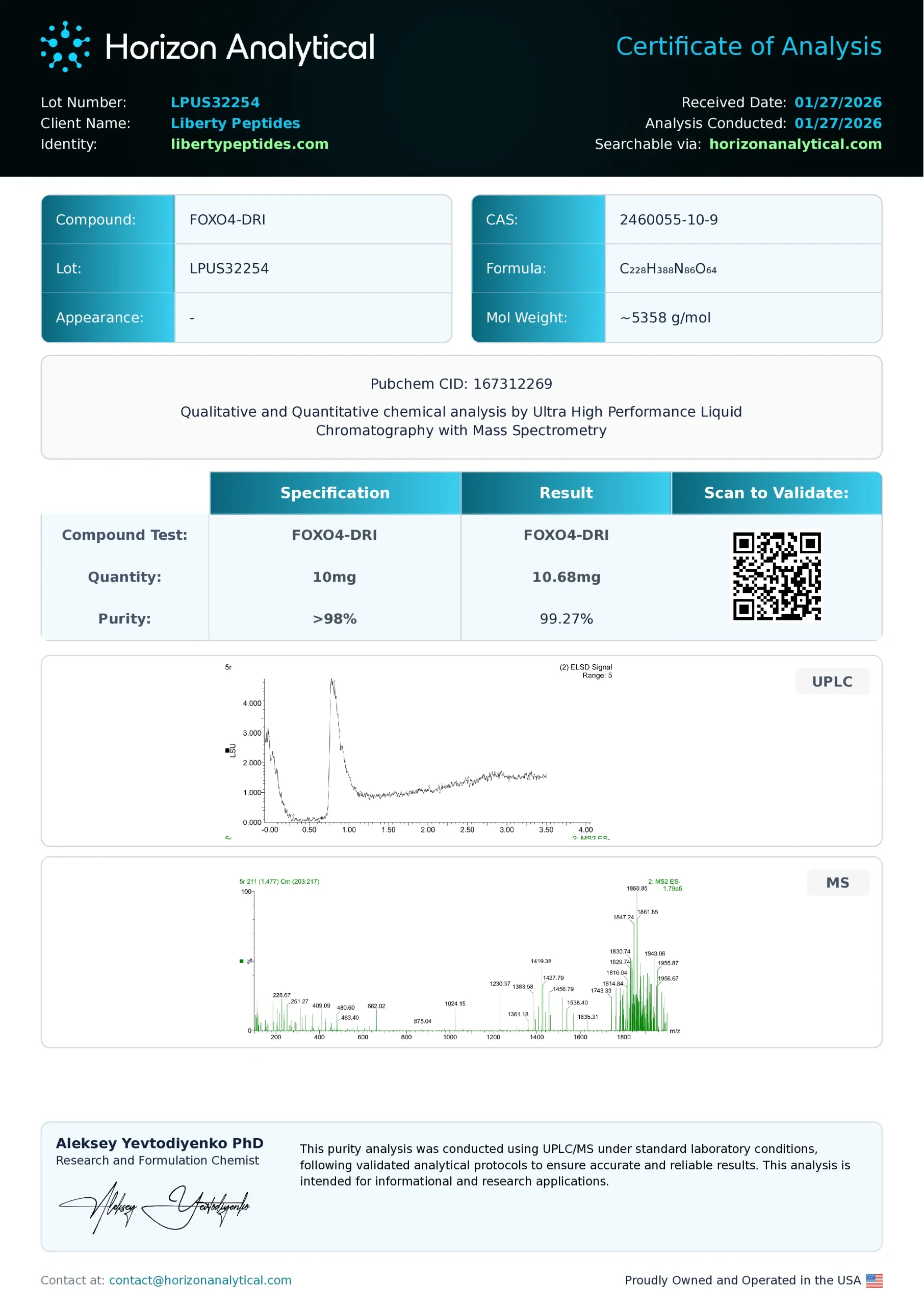 Every batch of raw materials is tested using UPLC and LC-MS to confirm chemical integrity