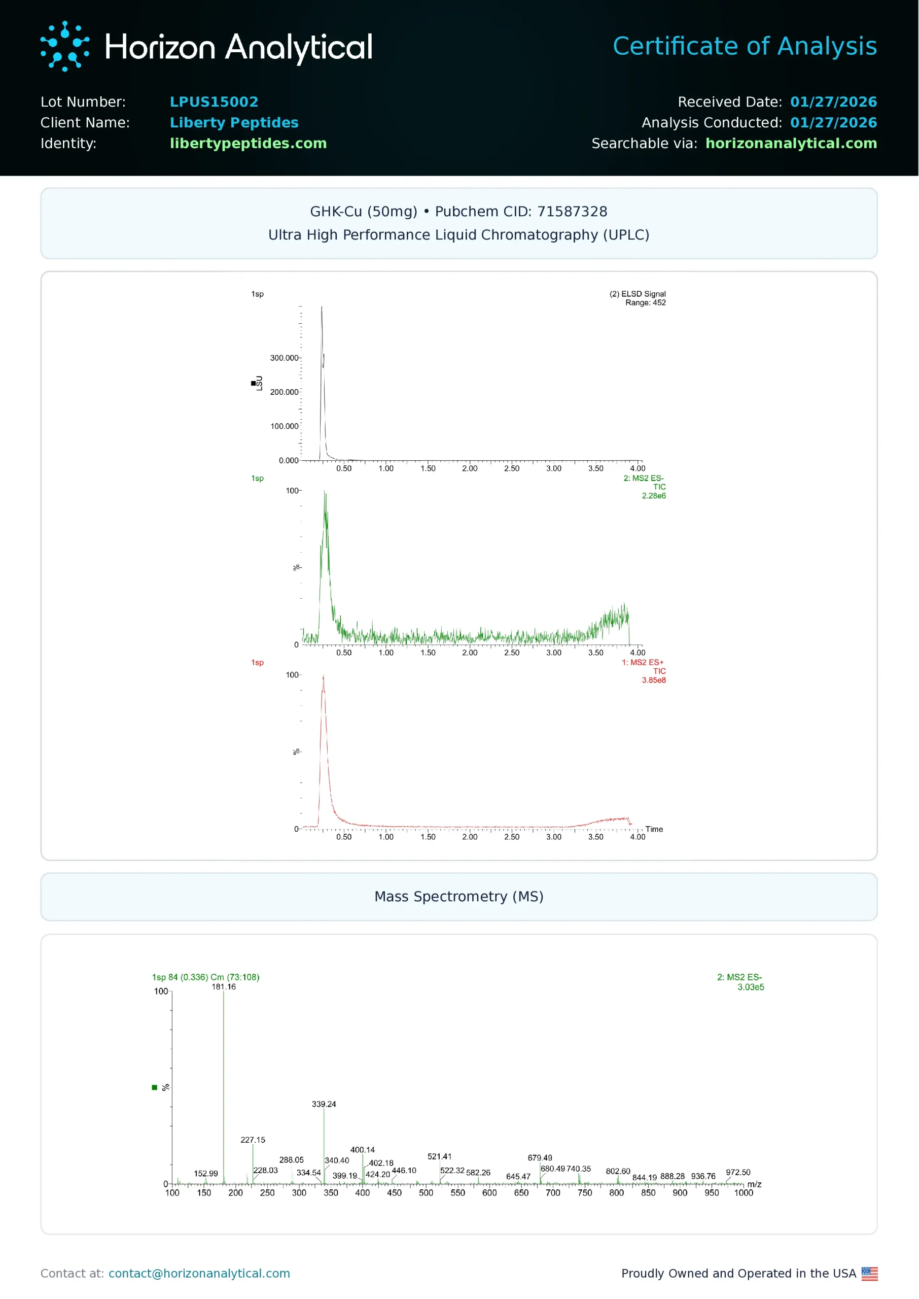 Every batch of raw materials is tested using UPLC and LC-MS to confirm chemical integrity