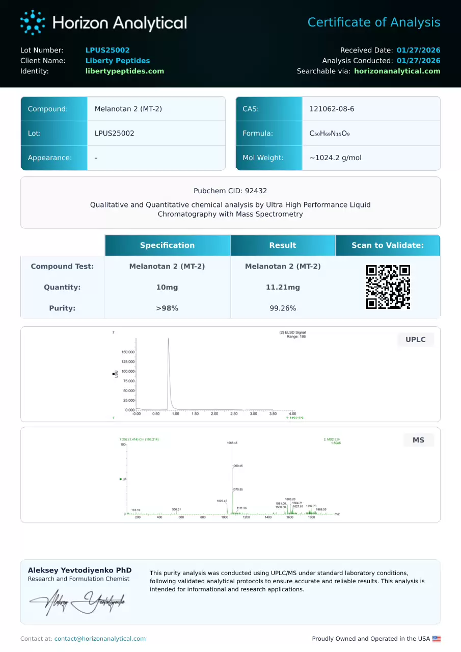 Third-party tested for ~99% purity