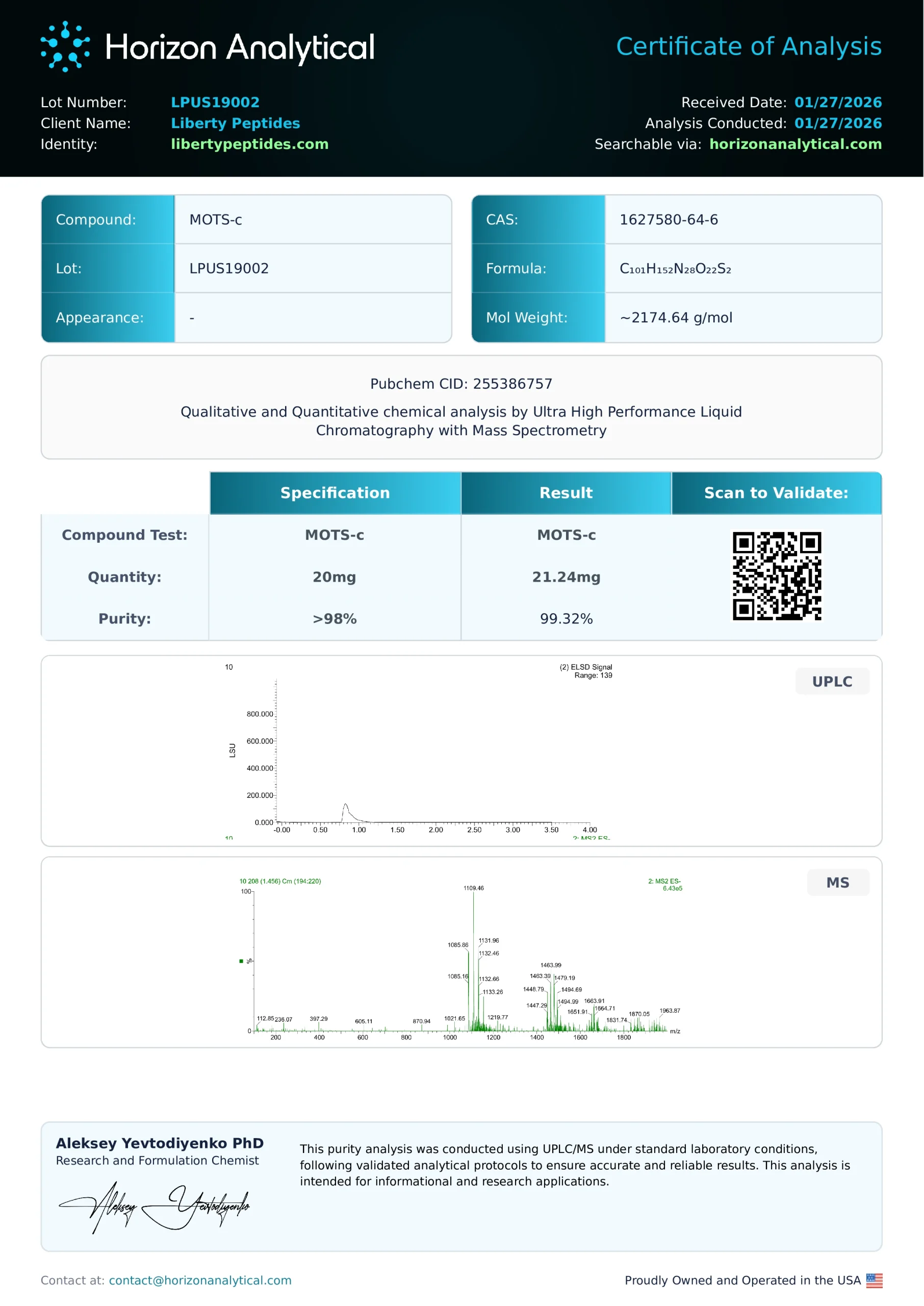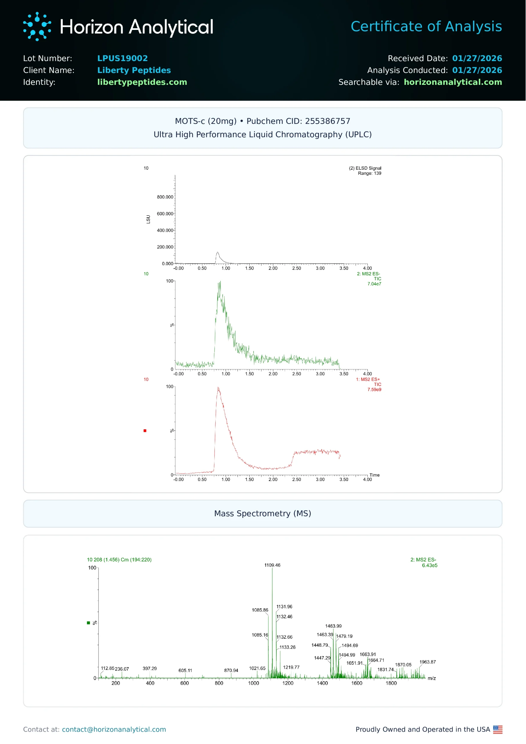 Every batch of raw materials is tested using UPLC and LC-MS to confirm chemical integrity