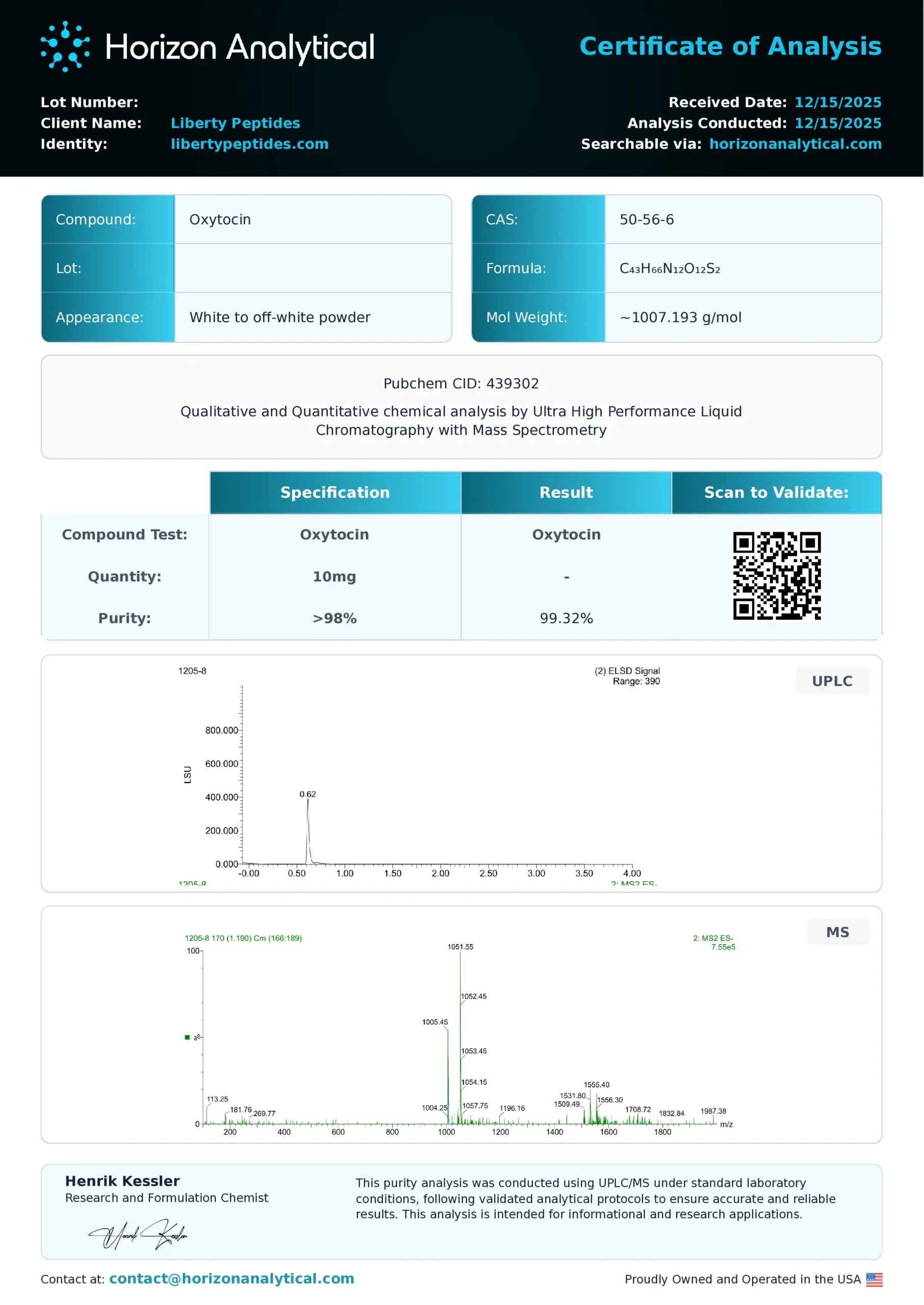 Every batch of raw materials is tested using UPLC and LC-MS to confirm chemical integrity