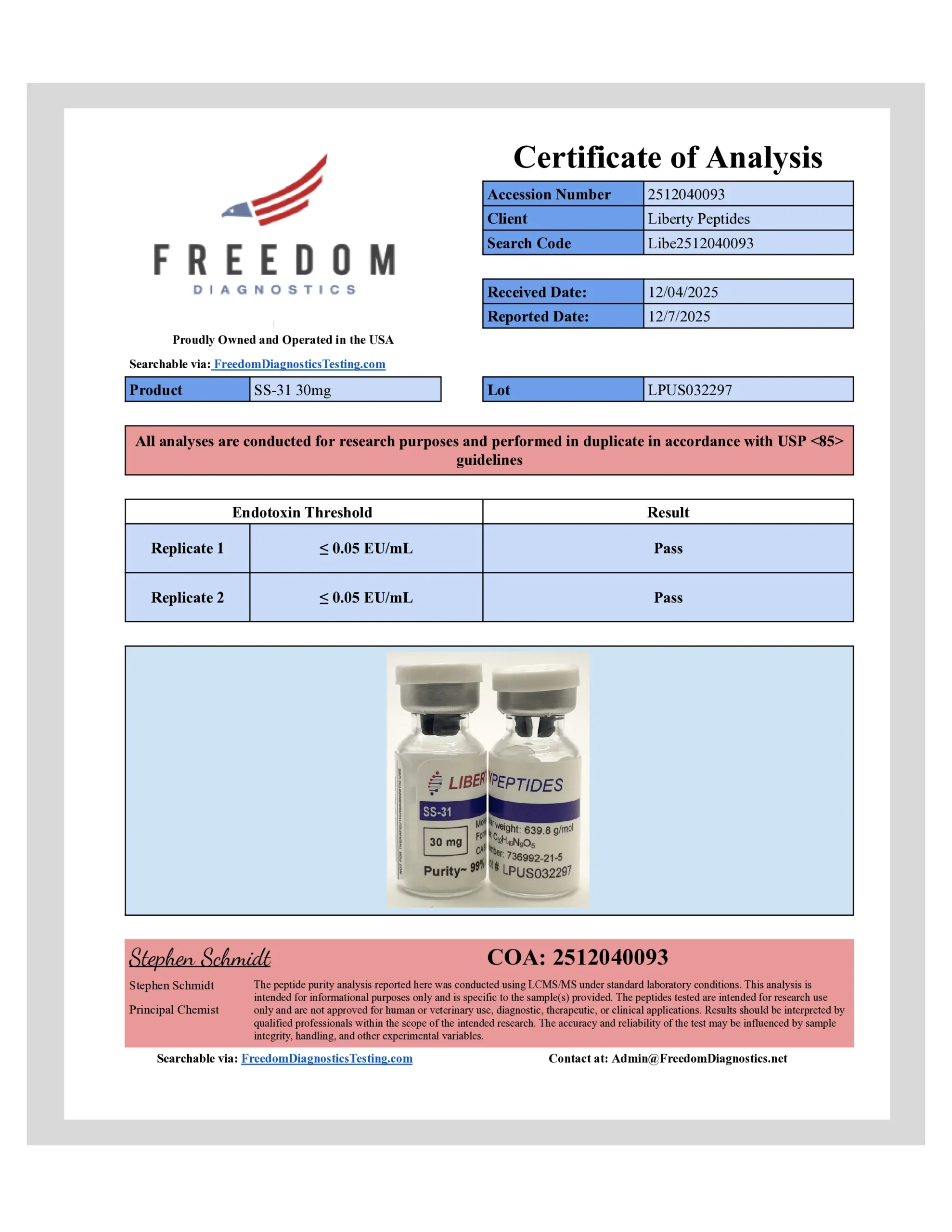 Third-party tested for ~99% purity