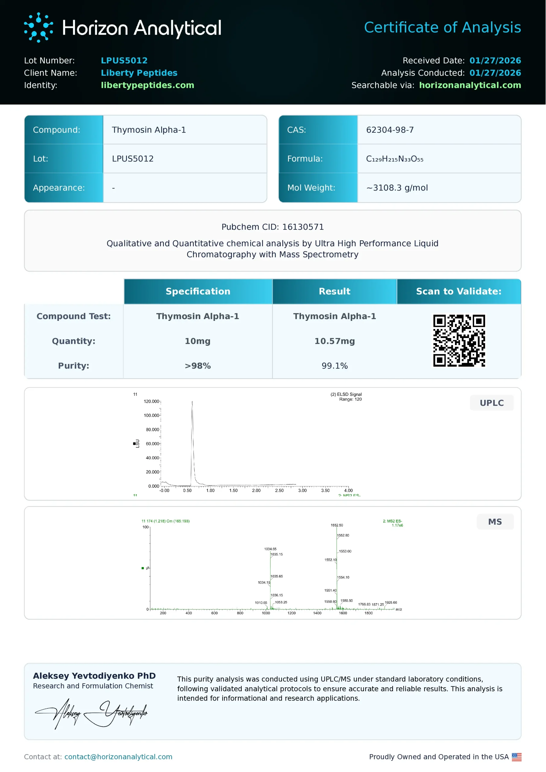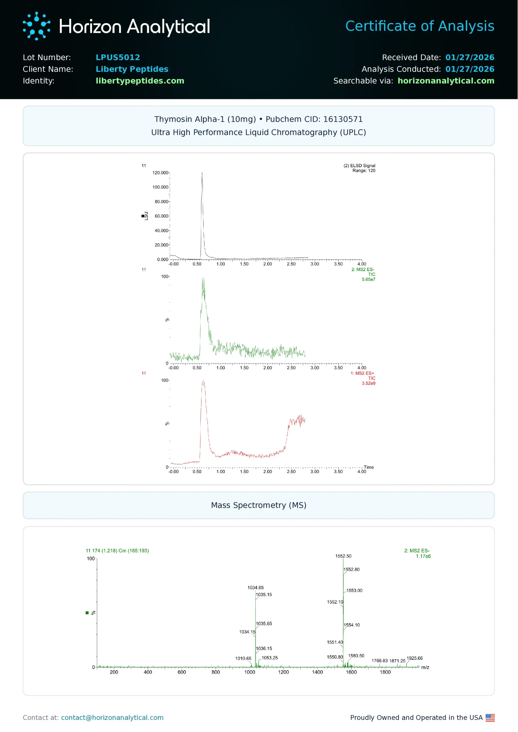 Every batch of raw materials is tested using UPLC and LC-MS to confirm chemical integrity